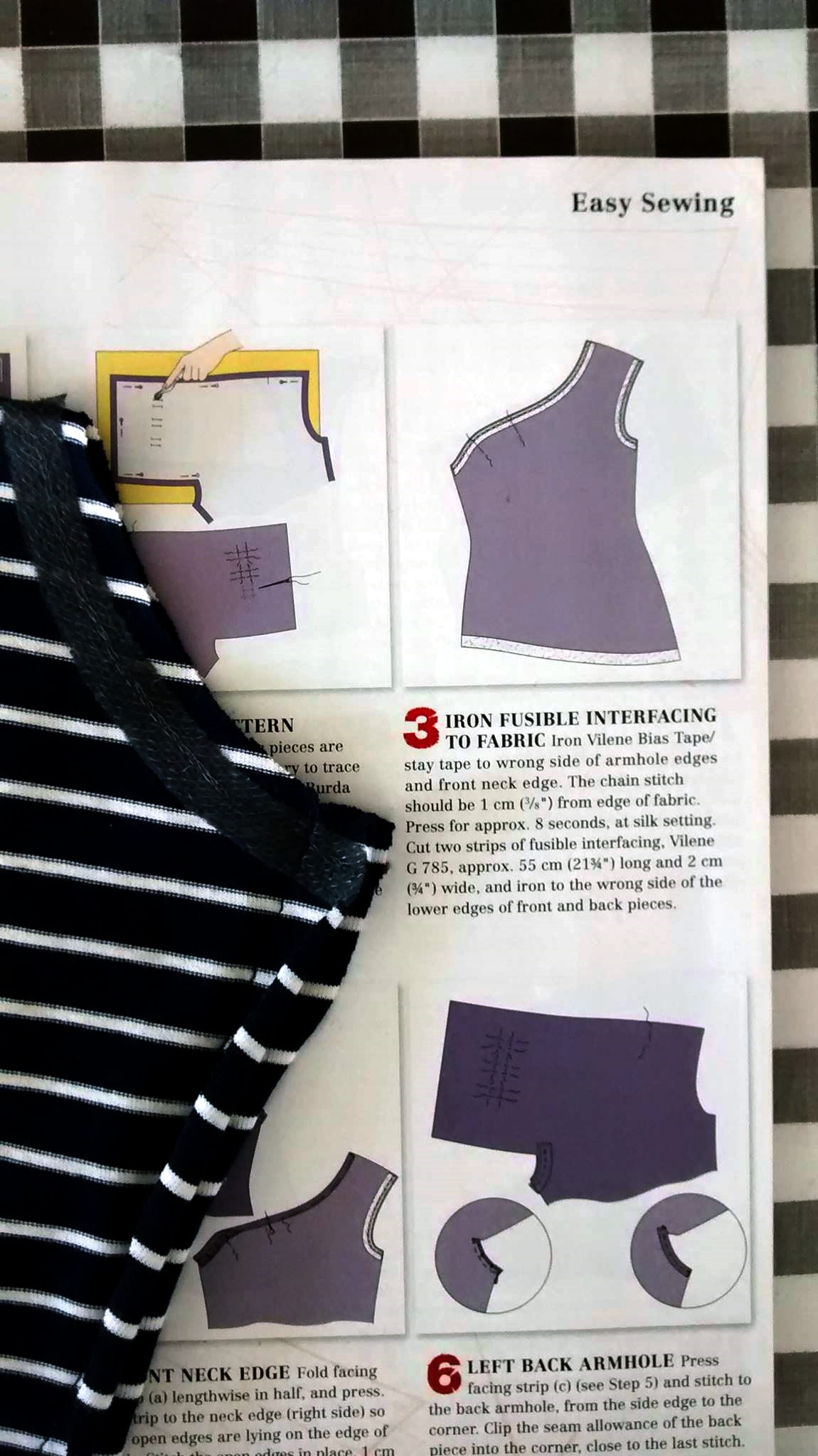 • I had no idea how to stop those now bare armholes from stretching until I dug out my yardage of Vilene Bias Tape, as so often recommended by Burda. Indeed, I dug out an old Burda Mag with a beginner’s guide for a dress which used it on the armholes; the advice was invaluable. Basically, the chain stitch in it needs to be 1cm from the cut edge, and you press it for approx 8 seconds on a silk setting. Wunderbar!