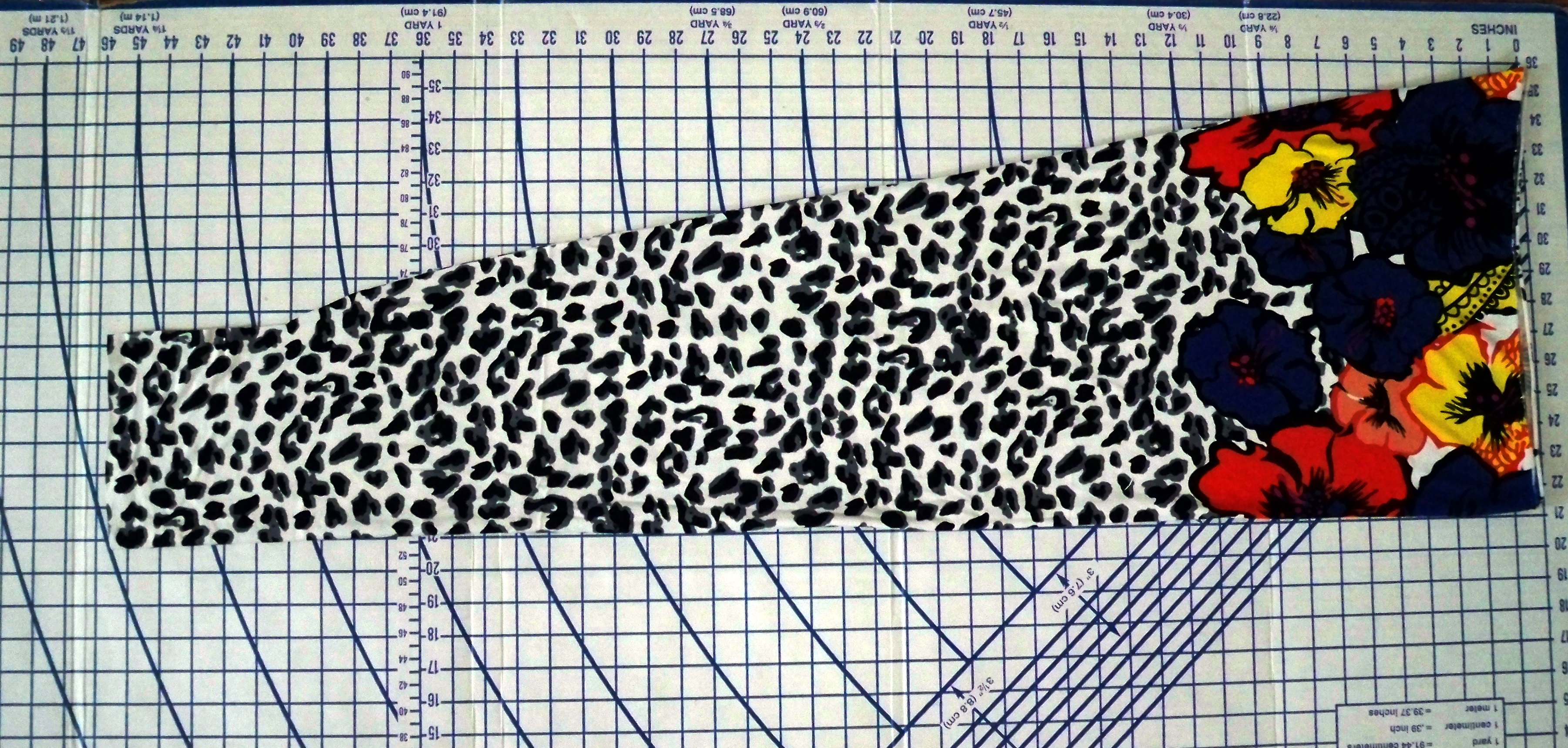 • To ensure both sides were even, I folded the fabric in half vertically before cutting the long edge. This meant I used one-quarter of my waist measurement (I have a 26″ waist, so 6.5″)