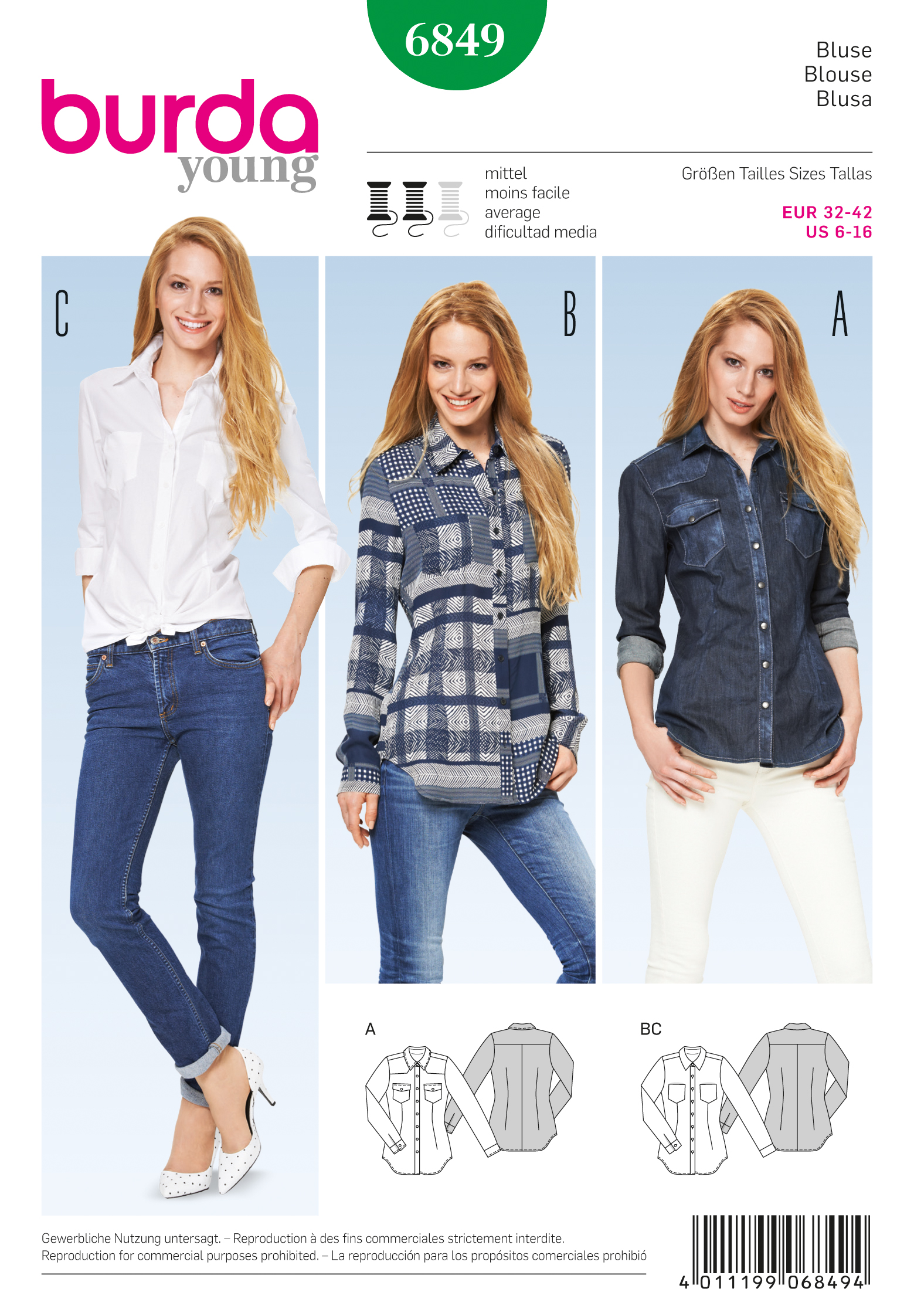 But actually, it would be nice to have a proper shirt pattern, you know? Because I don’t HAVE one, despite lots of fabrics that would suit one. Something casual, something fitted, something like .. Burda 6849.