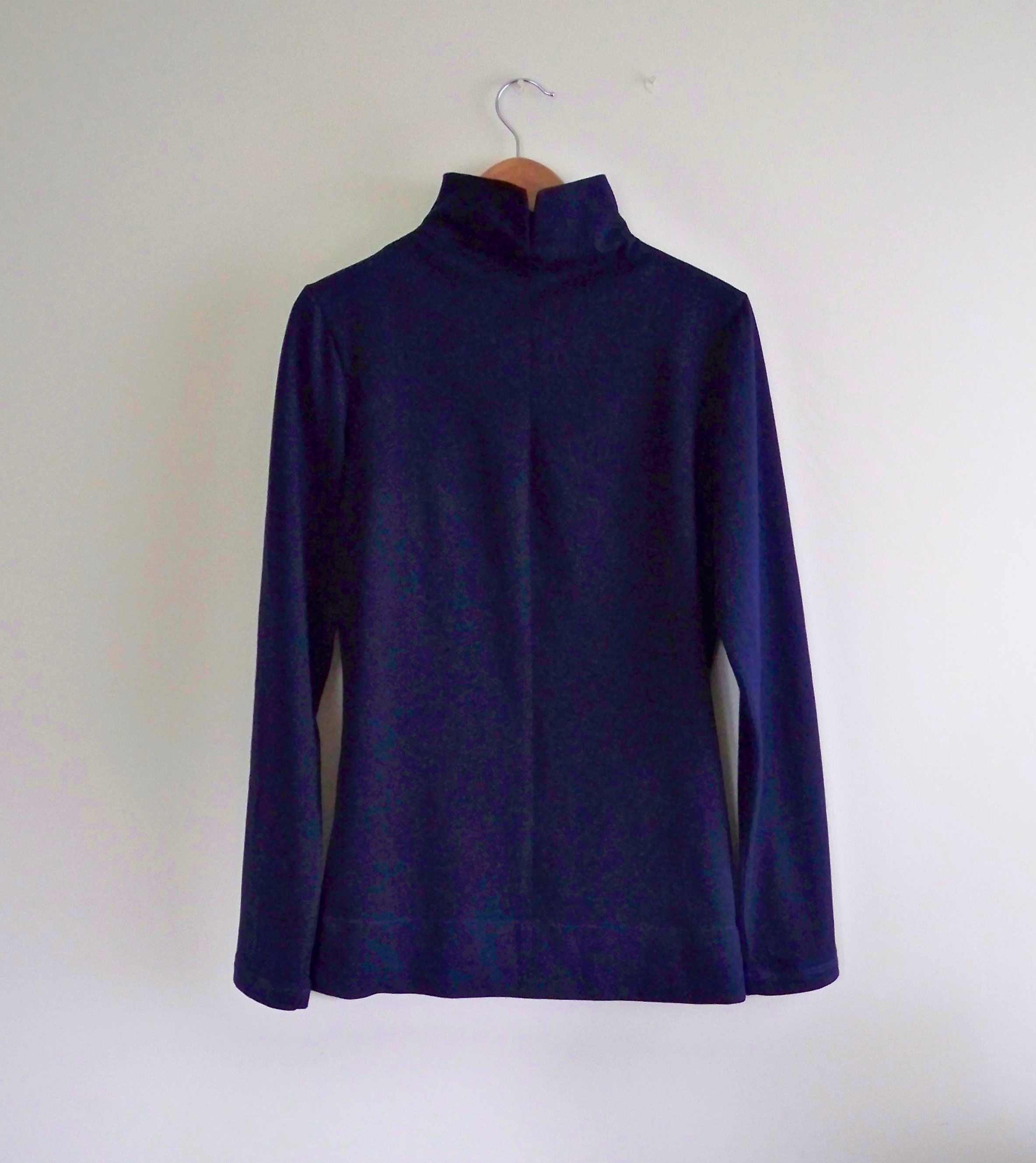 Rummaging in my stash I came across a firm, warm navy jersey of unknown provenance. Figuring that this would be a wearable toile if nothing else, I set to work. About a day later, I had the completed top.