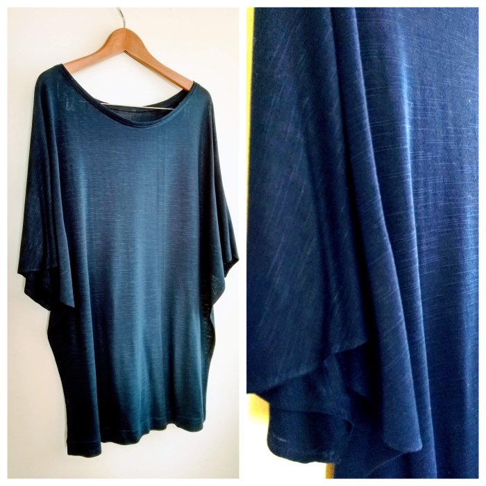 Luckily it looks alright – dare I say it, perhaps even better – without an additional tube of fabric beneath the swish of the bat wing? Besides, the more summery cut suits the flimsy jersey .. especially as the neckline is HELLA WIDE PEOPLE.